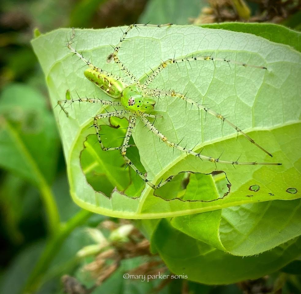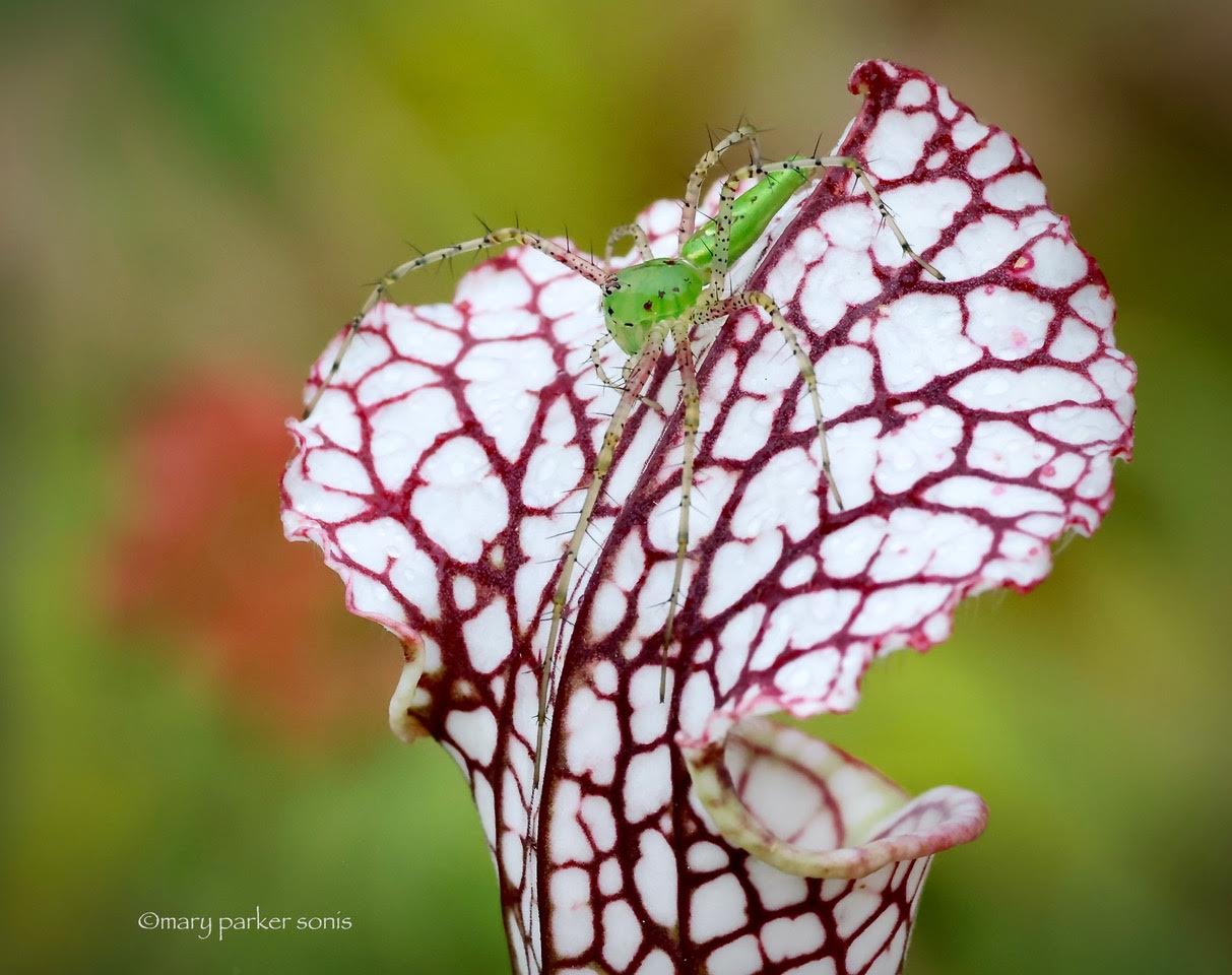 Also in the garden, the Lynx spiders are present and will soon be laying their eggs. This one sits atop a Pitcher plant